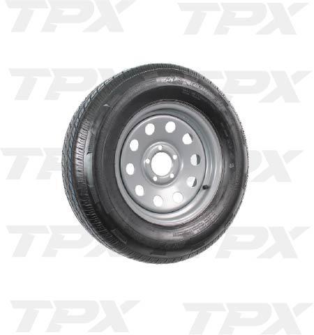Gray Mod 5 on 5 15" x 5" w/ 205/75 6 Ply is a reliable wheel and tire combination designed for trailers and vehicles requiring a durable and functional setup.